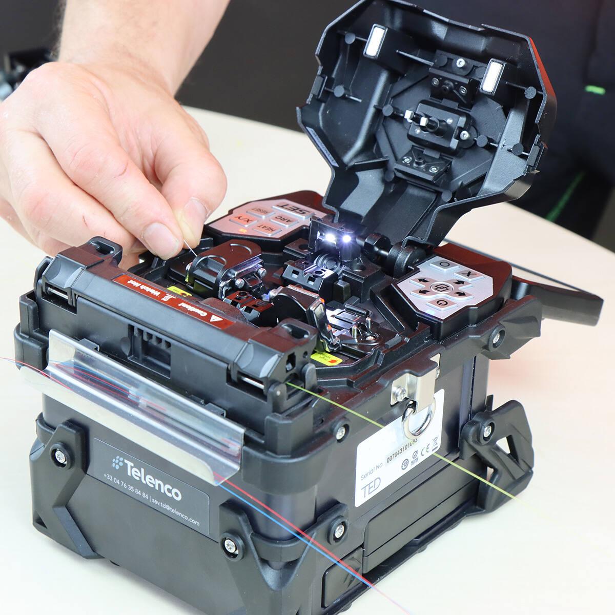 Das 3-Achsen-Glasfaser-Ausrichtungsschweißgerät Splice 1 TED® ermöglicht ultraschnelle und effiziente Glasfaserverbindungen zu geringeren Kosten. Mit einer Schweißgeschwindigkeit von nur 6 Sekunden ist der neue Schweißer Splice 1 der Verbündete von Technikern, die an der Bereitstellung und Wartung von FTTx-, LAN- oder Rechenzentrumsinfrastrukturen arbeiten.